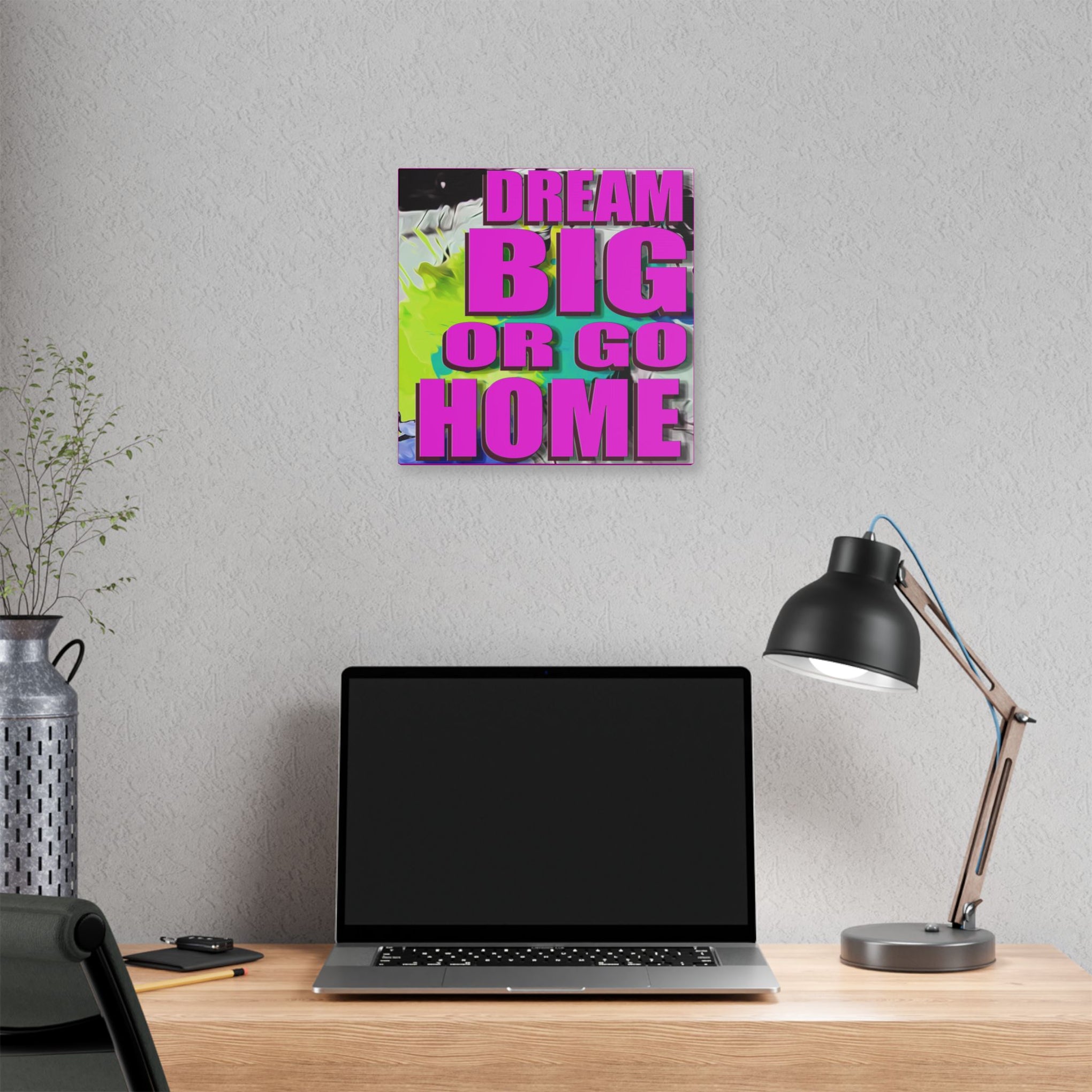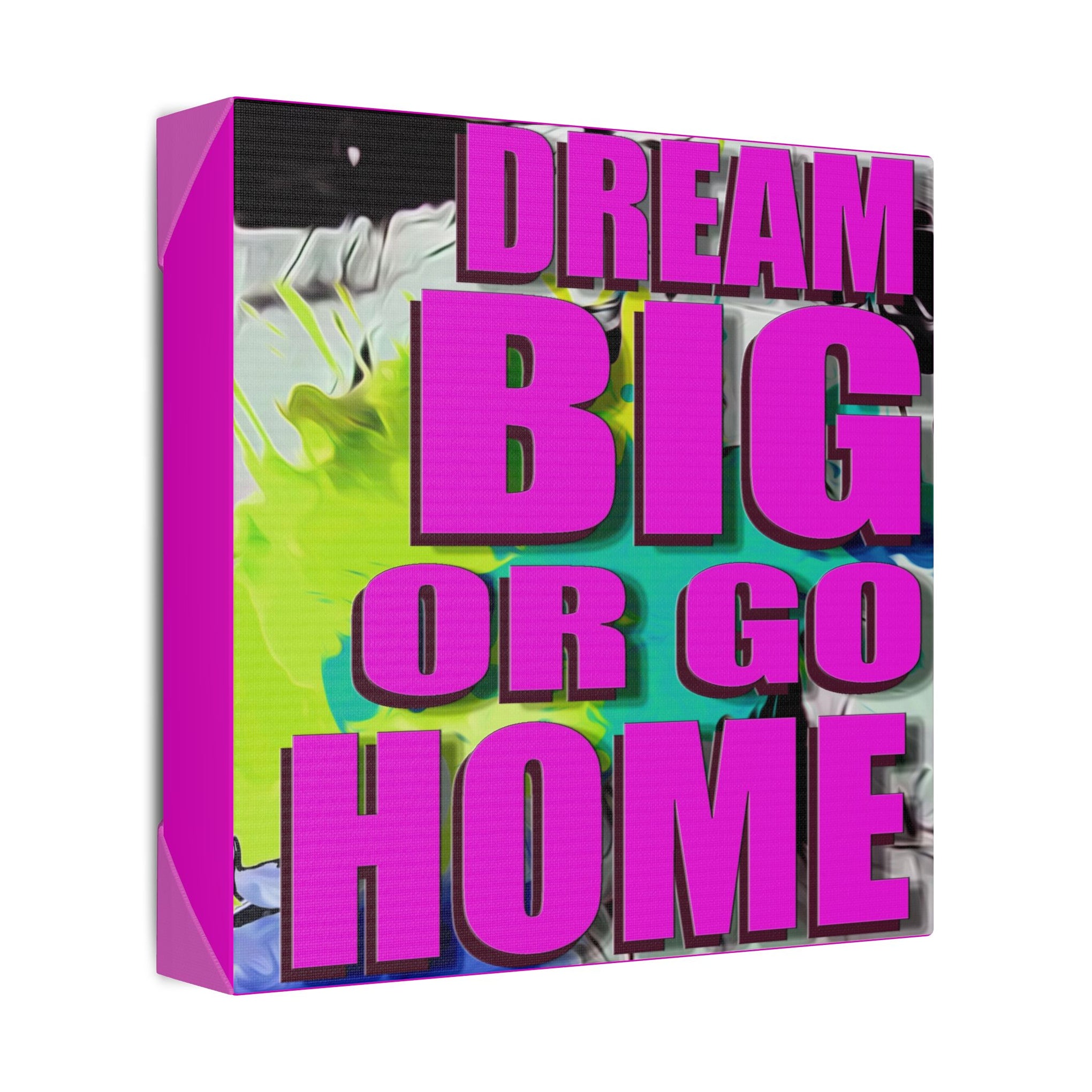 Dream Big Or Go Home - Canvas Gallery Wrap, Modern, Trendy Pop Art, Pop Culture, Pink, Green, Abstract Art, Quotes, Mottos. Cool, Fun Sayings. Chic & Modern Wall Decor